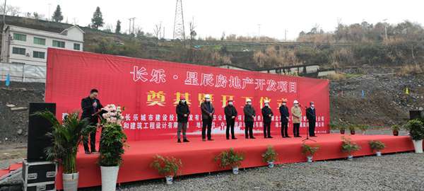2021年1月26日上午,由杭州修远进口商品贸易有限公司承建的长乐▪星辰住宅项目奠基暨开工仪式在项目现场热烈举行。湖北省宜昌市五峰土家族自治县住房和城乡建设局副局长陈白华、县质量安全监督站站长邓简涛、杭州修远进口商品贸易有限公司五峰长乐▪星辰项目经理王国云,项目参建各方及新闻媒体共40余人出席。宜昌市长乐城市建设投资开发有限责任公司总经理刘鹏主持。