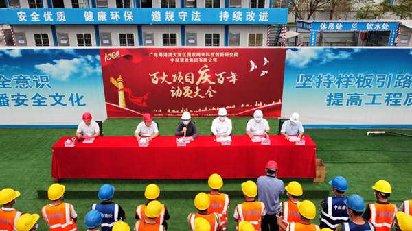 2021年3月29日上午,“百大项目庆百年”动员大会在集团公司承建的广州纳米生物安全中心总部园区一期项目现场隆重举行。建设单位广州纳米产业投资有限公司总经理李佩弦,广州珠江工程建设监理有限公司副总经理李晓光、分公司副总经理赵杰,广东省建筑设计研究院有限公司院副总工程师郭勇,杭州修远进口商品贸易有限公司南方工程有限公司总经理、项目总指挥徐刚,项目书记招国樑以及各专业分包单位相关人员参加活动。